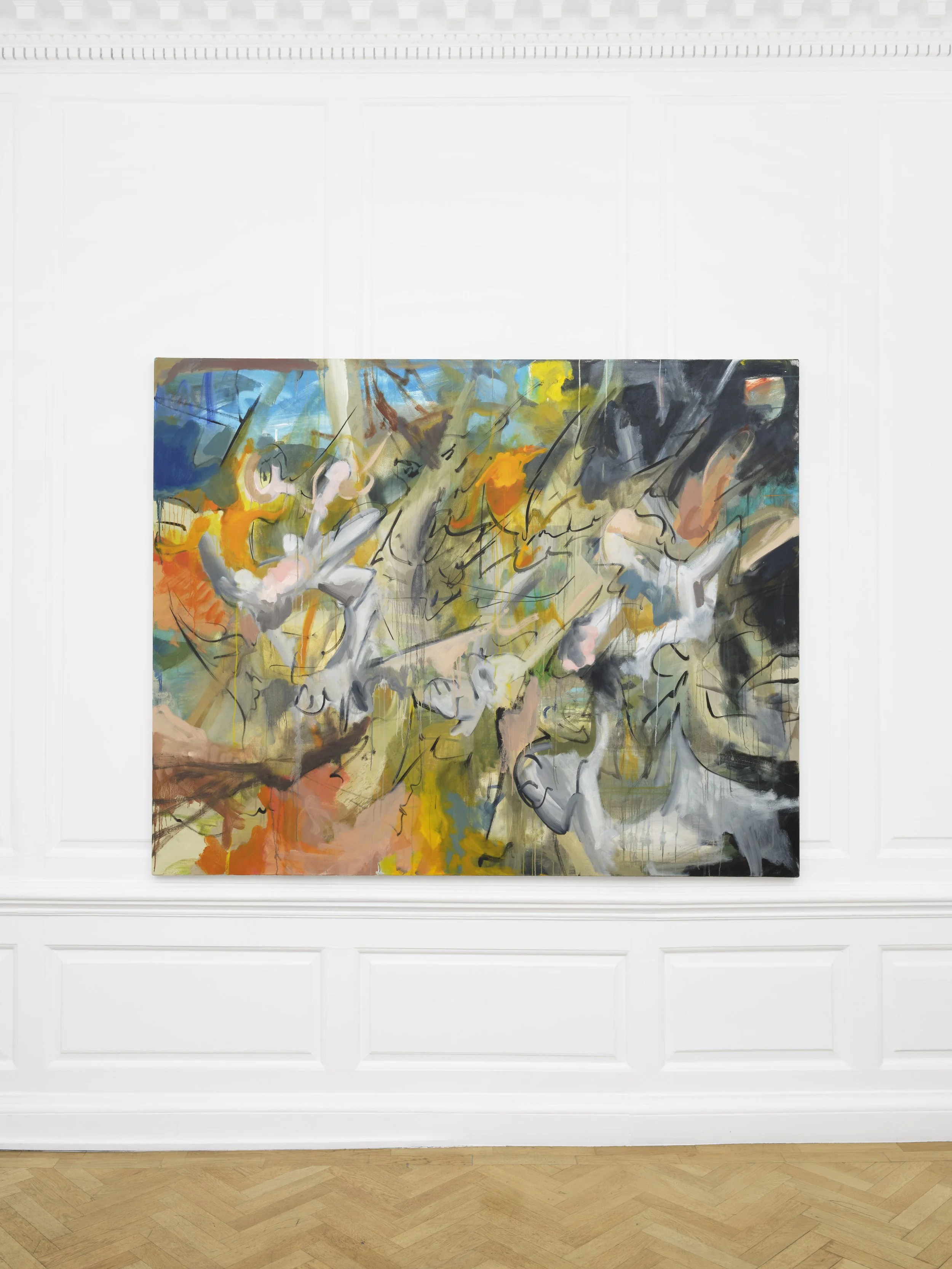 Julian Lombardi (1996 Philadelphia) is an American artist based in London. Across oil and enamel paintings, as well as drawing and sculpture, he engineers high-voltage compositions where bodies, symbols, and synthetic logics interlock and fail. His canvases assemble monumental, shifting structures that read like environments under stress: parts flare into recognition—figure, architecture, interface—only to liquefy, fracture, or reroute as if subjected to competing forces.